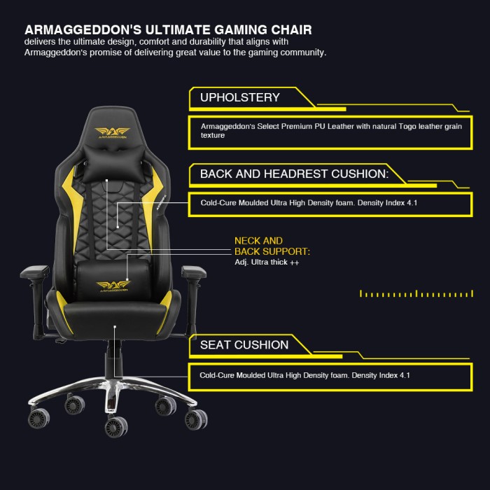 7 Pilihan Gaming Chair Armaggeddon Nebuka Kursi Gaming Premium PU Leather with natural Togo leather grain