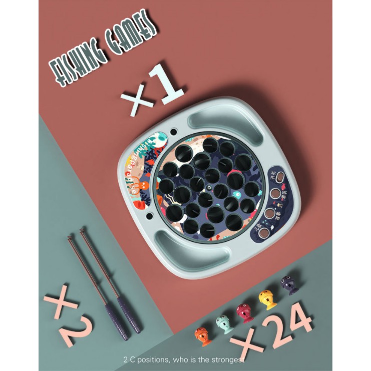 4 Produk lain terkait Produk Fishing Games 45 pcs Mainan pancing ikan anak lampu + Musik yang perlu Anda lirik karena menarik, Produk itu adalah....
