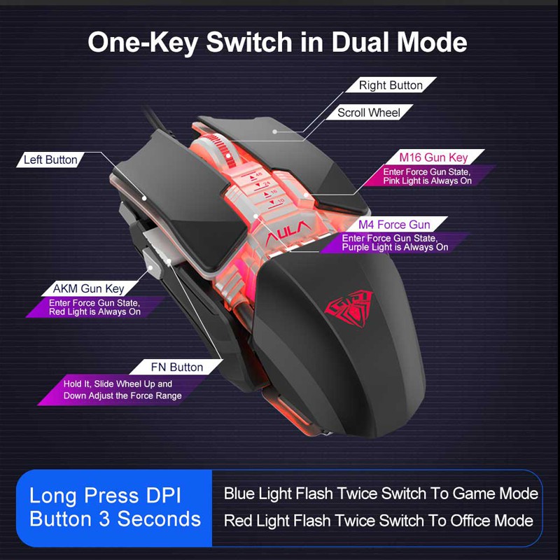 Alasan kenapa harus beli Mouse Gaming AULA H-508 Magnetic - Macro Programming - Dual Mode Interchangeable -6400DPI-7Buttons sekarang