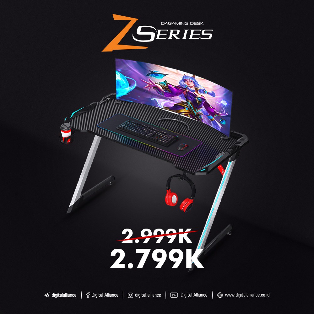 TOP 6 Pilihan Digital Alliance Gaming Desk Z Series Meja Portable Black Solid