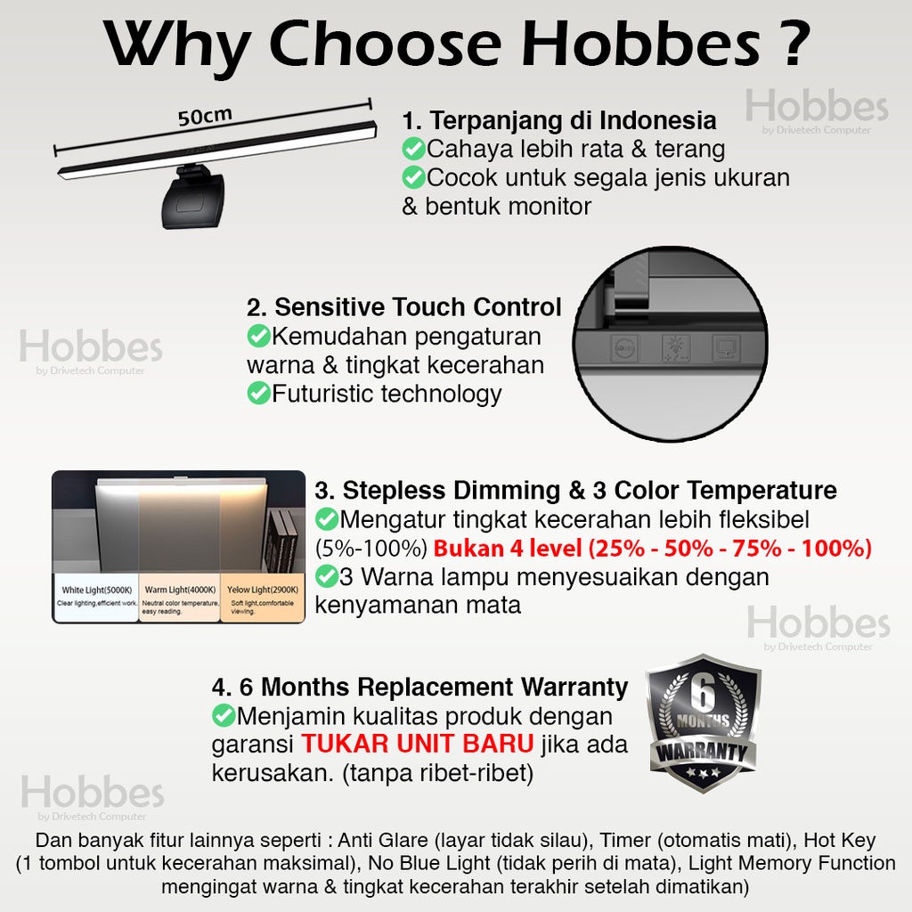 Kelebihan - Kelebihan membeli Screen Bar Monitor Light LED Hobbes Lampu Setup Meja Kerja Gaming PC Screenbar Original Ori Asli di Toko ini