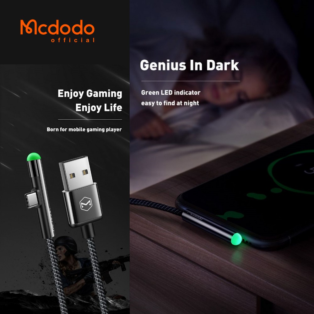 Kelebihan - Kelebihan membeli Mcdodo Kabel Data Type C GAME SERIES GREEN LED LIGHT QC3.0 Fast Charging 2A USB C GAME CA-6391 di Toko ini